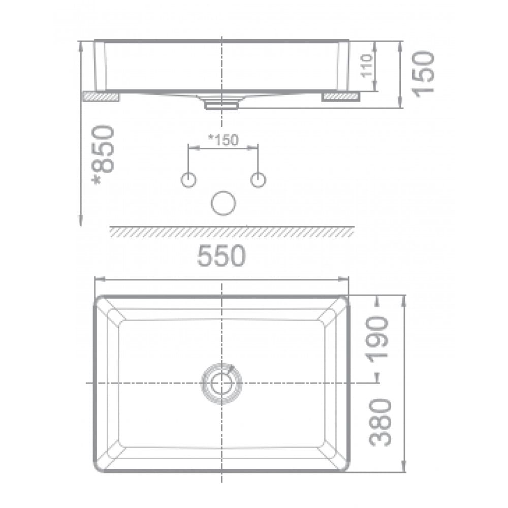 Hình ảnh: bản vẽ kỹ thuật Chậu rửa đặt bàn American Standard Activa WP-F412