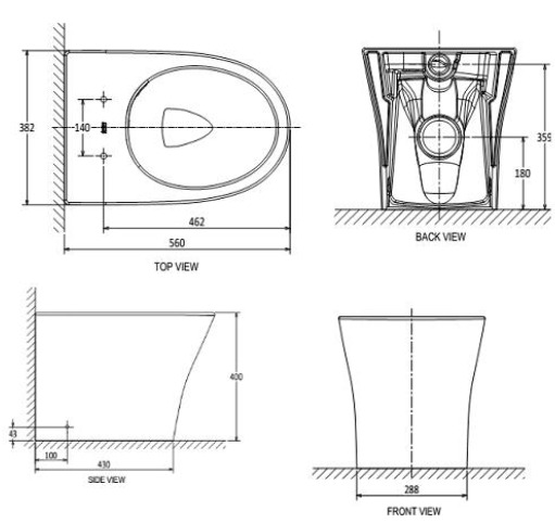 Hình ảnh: bản vẽ kỹ thuật Bàn Cầu đặt sàn AMERICAN STANDARD VF-2141S