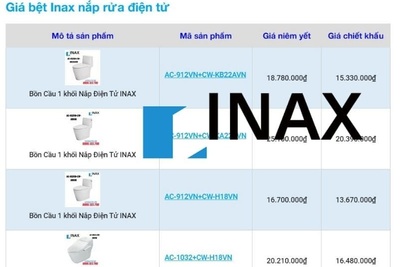 Bảng giá thiết bị vệ sinh Inax Nhật Bản rẻ nhất tháng 04/2026