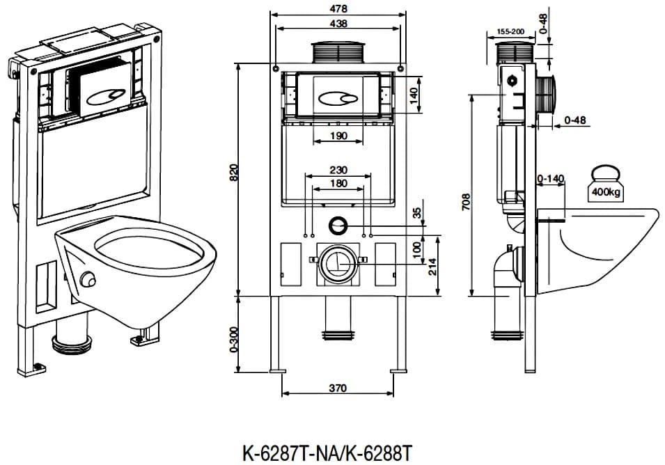 Bản vẽ kỹ thuật Bộ bồn cầu két âm tường Kohler K-19720T-0 + K-6287T-NA + K-6288T-CP
