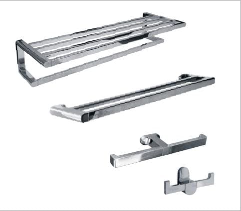 - Bộ sản phẩm: Bao gồm 4 món ( Giàn vắt khăn, móc treo áo đôi, Lô giấy vệ sinh đôi, Giá vắt khăn đôi )