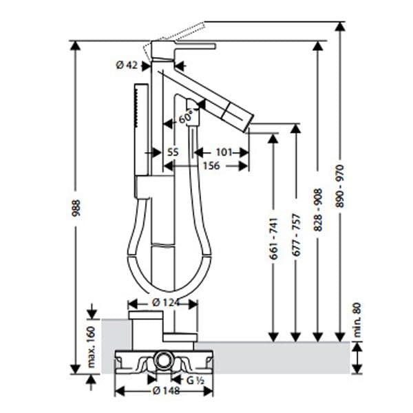 Hình ảnh: bản vẽ kỹ thuật BỘ TRỘN BỒN TẮM HANSGROHE ÂM SÀN STARCK 589.29.677