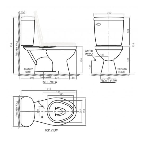 Hình ảnh: bản vẽ kỹ thuật Bồn Cầu 2 khối American Standard VF-2395SL