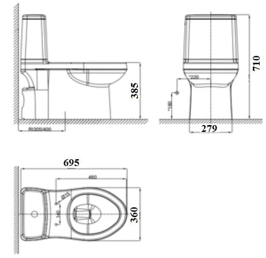Bản vẽ kỹ thuật Bồn Cầu American Standard VF-1858PR Nắp Rửa Điện Tử: