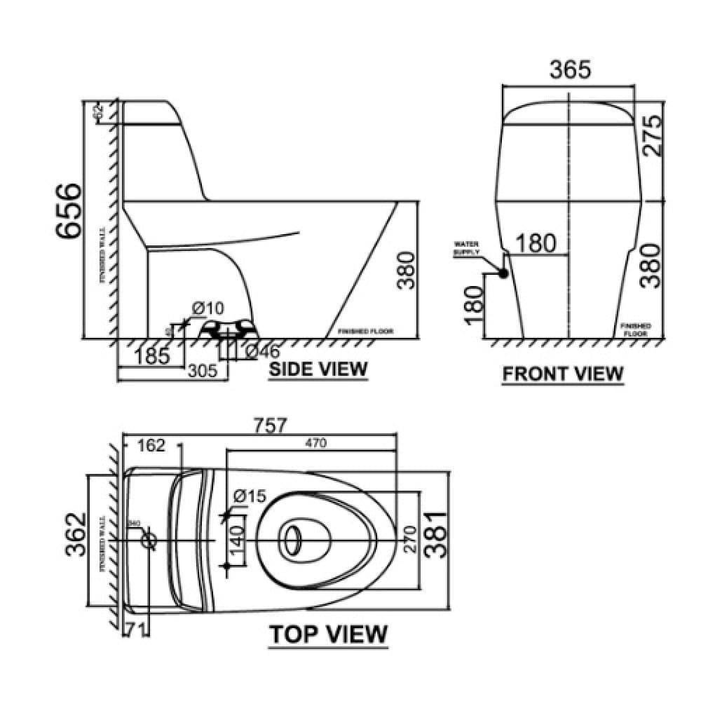 Bản vẽ kỹ thuật Bồn Cầu American Standard VF-2011PL Nắp Rửa Điện Tử:
