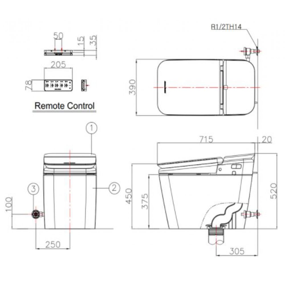 Bản vẽ kỹ thuật Bồn Cầu Điện Tử American Standard KP-8310 PLAT Nắp Êm: