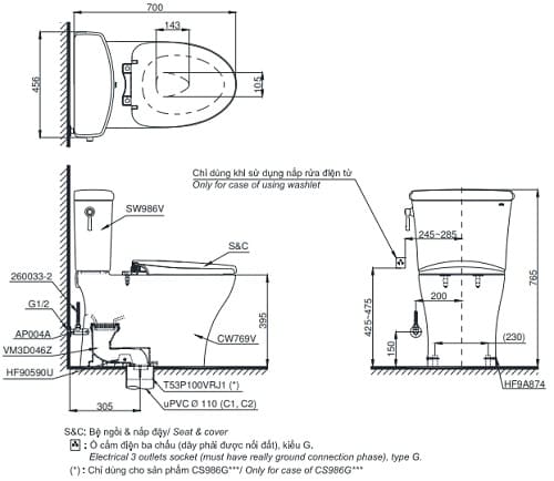 Hinh ảnh: bản vẽ kỹ thuật Bồn cầu 2 khối TOTO CS986GT2