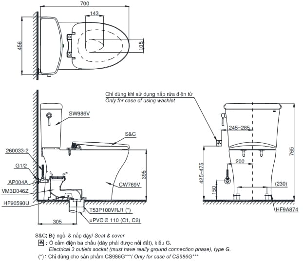 Hình ảnh: bản vẽ kỹ thuật bồn cầu TOTOCS986GT8