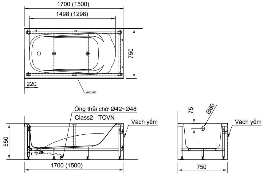 Hình ảnh: bản vẽ kỹ thuật bồn tắm độc lập Inax FBV-1702SR: