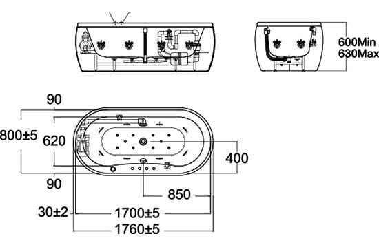 Hình ảnh: bản vẽ kỹ thuật Bồn tắm massage AmericanStandard Acacia 70192100-WT
