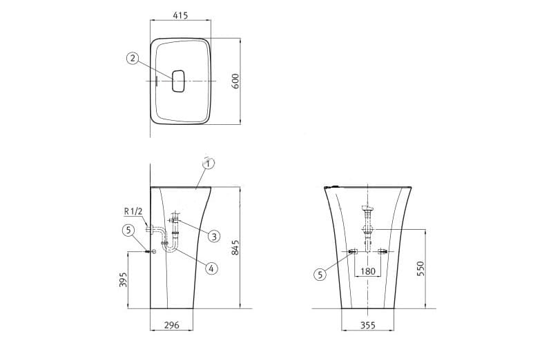 Hình ảnh: bản vẽ kỹ thuật Chậu Chân Liền American Standard WP-F523