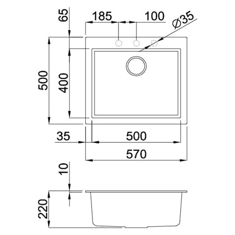 Bản vẽ kỹ thuật Chậu rửa chén đá 1 hố Malloca Tortora G-10543: