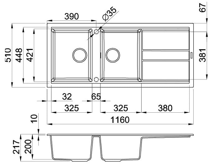 Bản vẽ kỹ thuật Chậu rửa bát đá Malloca Titanium K-50040: