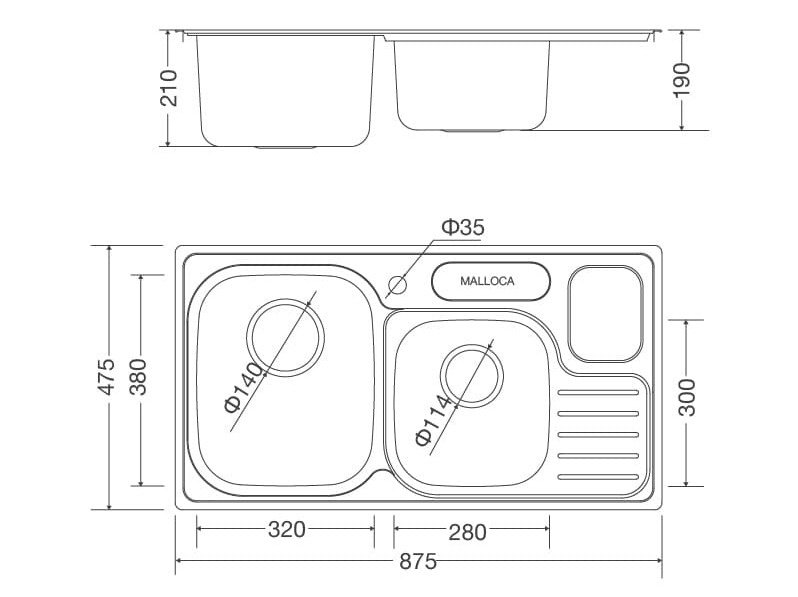 Bản vẽ kỹ thuật Chậu rửa chén Malloca MS 1024: