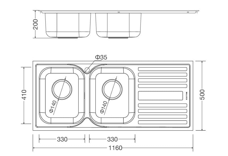 Bản vẽ kỹ thuật Chậu rửa chén Malloca MS 1025R: