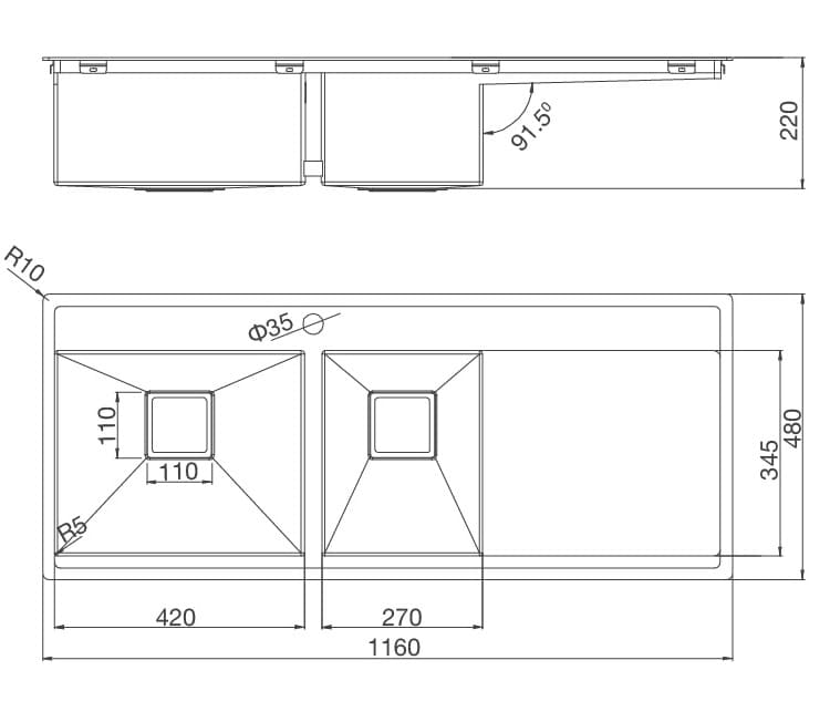 Bản vẽ kỹ thuật Chậu rửa chén Malloca MS 6306T: