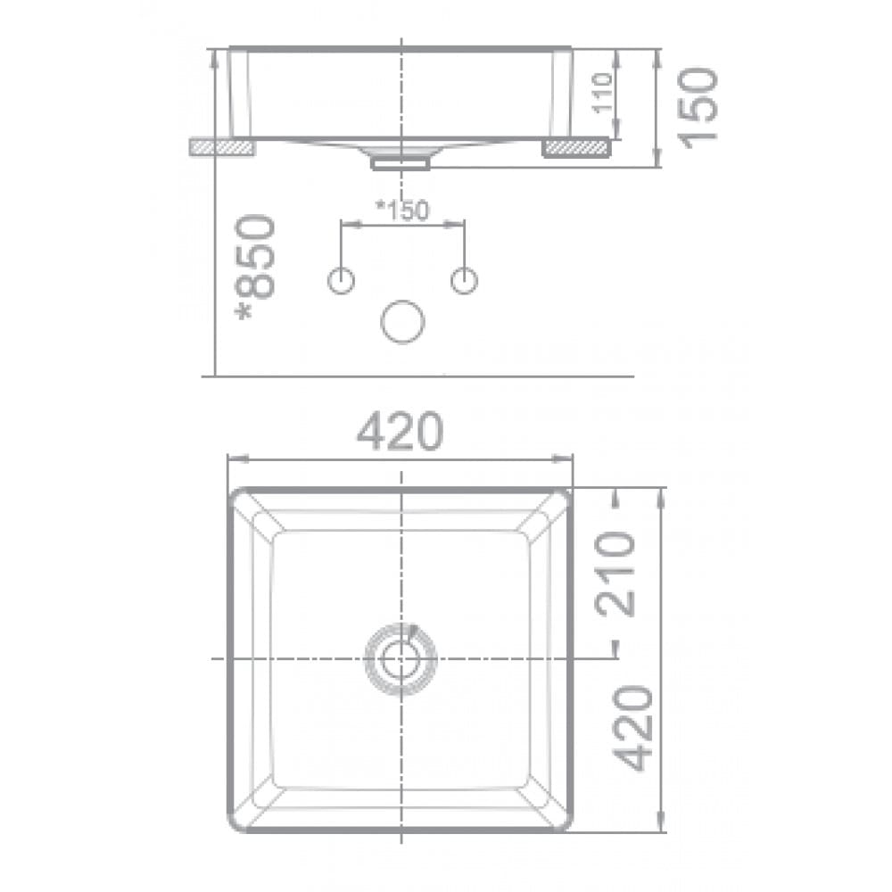 Hình ảnh: bản vẽ kỹ thuật Chậu rửa đặt bàn American Standard Activa WP-F411