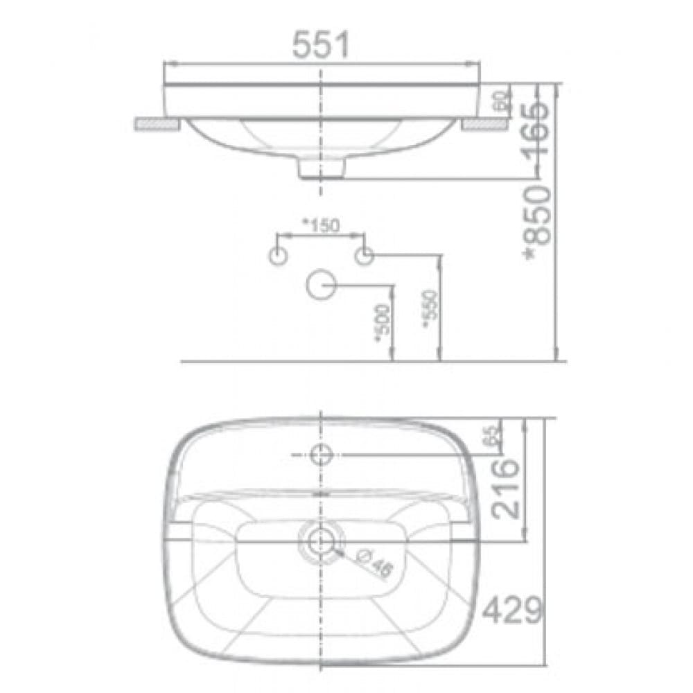 Bản vẽ kỹ thuật Chậu rửa đặt bàn American Standard VF-0420: