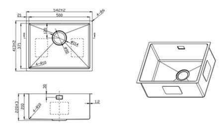HÌnh ảnh: Bản vẽ kỹ thuật chậu rửa bát 1 hố Clara CSS-23