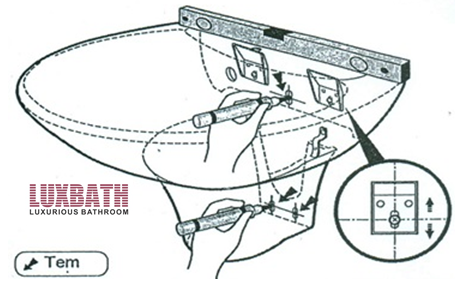 Dùng vít cố định chậu trong bộ phụ kiện kèm theo để cố dịnh chậu rửa mặt và bề mặt tường rồi siết chặt vít.