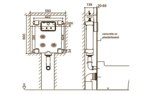Hình ảnh: bản vẽ kỹ thuật Két nước âm tường American Standard VP-G30042
