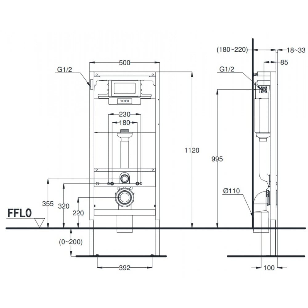 Hình ảnh: bản vẽ kỹ thuật Két Nước Và Khung Âm Tường TOTO WH045DCÔNG TY CỔ PHẦN QUỐC TẾ LUXBATH