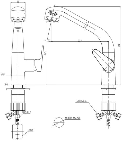 Bản vẽ kỹ thuật vòi rửa bát nóng lạnh Mirolin MK554: