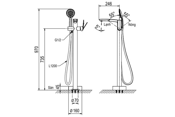 Hình ảnh: bản vẽ kỹ thuật Vòi sen bồn tắm Platinum P.50.320
