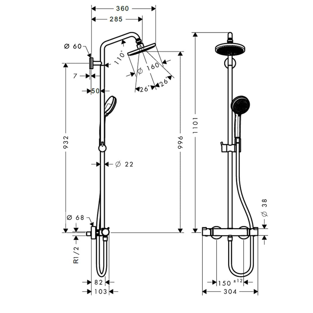 Hình ảnh: bản vẽ kỹ thuật SEN CÂY HANSGROHE CROMA 160 589.51.600