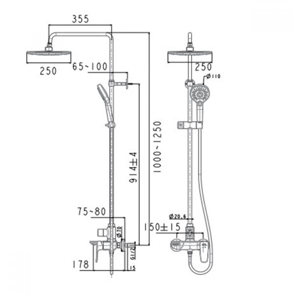 Hình ảnh: bản vẽ kỹ thuật Sen cây tắm nóng lạnh American Standard WF-1772