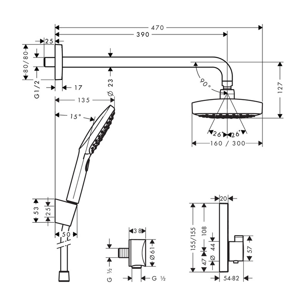 Hình ảnh: bản vẽ kỹ thuật SEN TẮM ÂM TƯỜNG HANSGROHE RAINDANCE E 589.52.634