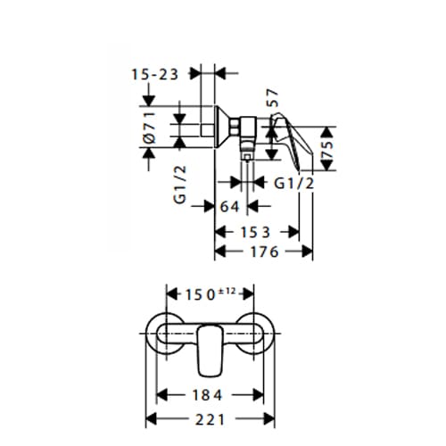 Hình ảnh: bản vẽ kỹ thuật Sen tắm HAFELE Hansgrohe 589.52.404