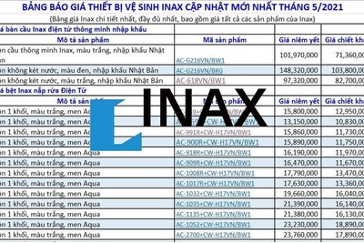 Bảng báo giá thiết bị vệ sinh Inax mới nhất 19/5/2021