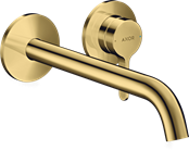 Vòi lavabo rửa mặt nóng lạnh âm tường màu vàng quang xước |