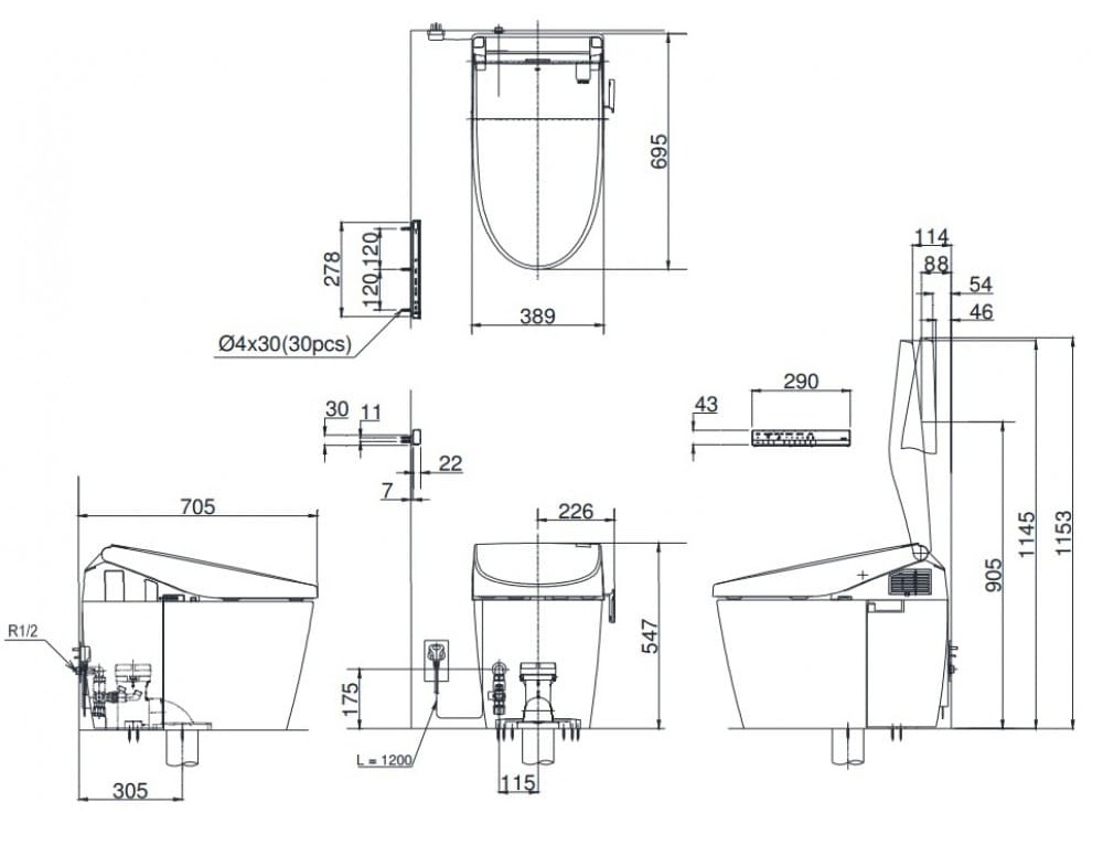 Bản vẽ kỹ thuật Bồn cầu thông minh TOTO Neorest AH CS985VA/TCF9786WA: