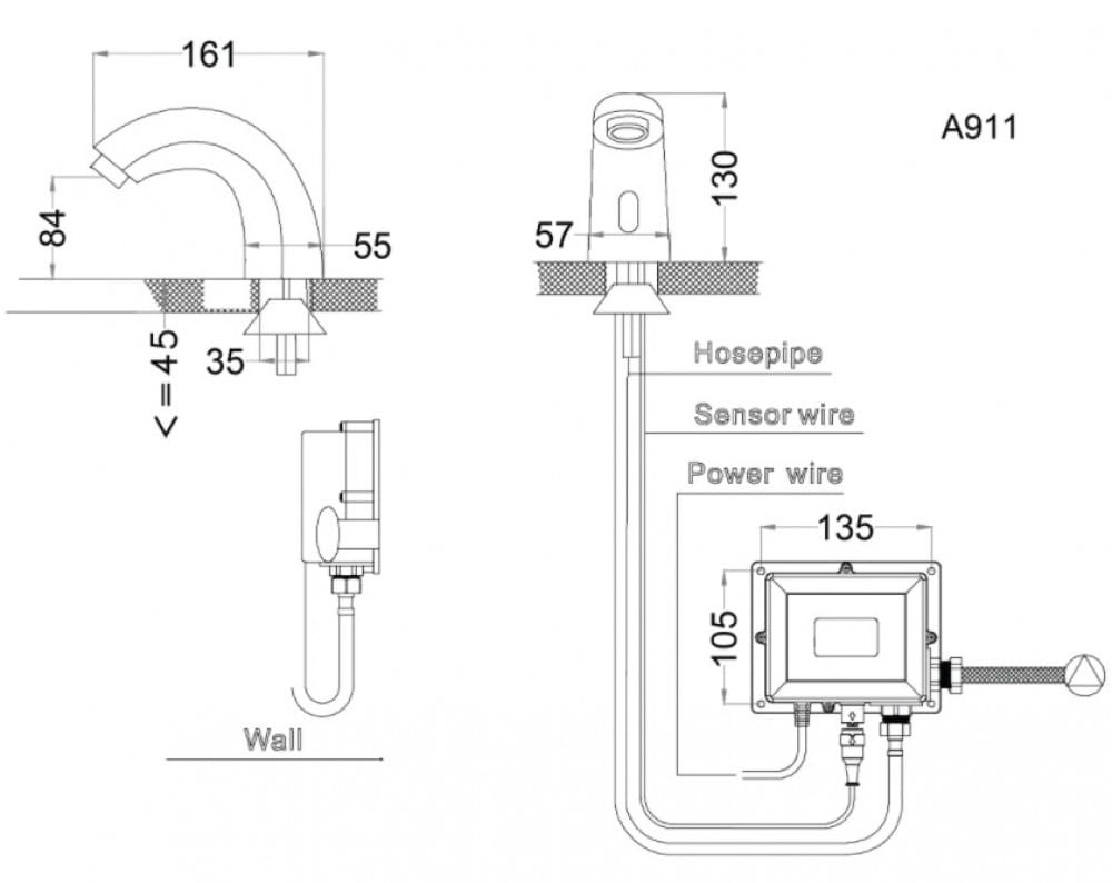 Bản vẽ kỹ thuật Vòi Cảm Ứng Lavabo Caesar A911: