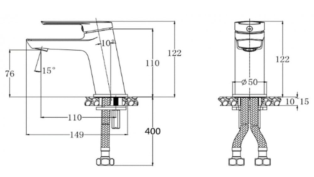 Hình ảnh: bản vẽ kỹ thuật Vòi Nóng Lạnh Lavabo CAESAR B061CU