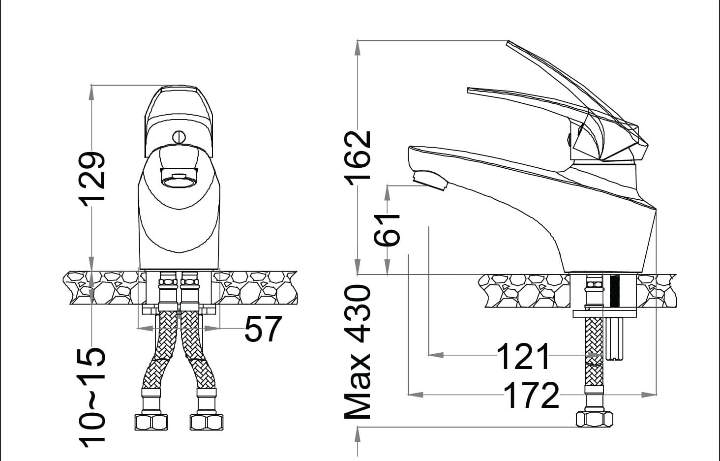 Bản vẽ kỹ thuật Vòi Nóng Lạnh Lavabo Caesar B170CU: