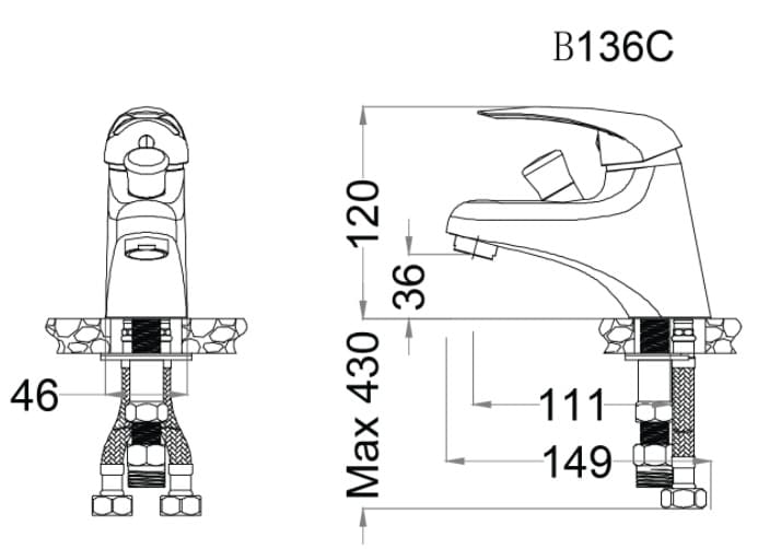 Hình ảnh: bản vẽ kỹ thuật Vòi Nóng Lạnh Lavabo kèm tay sen Caesar B136CU