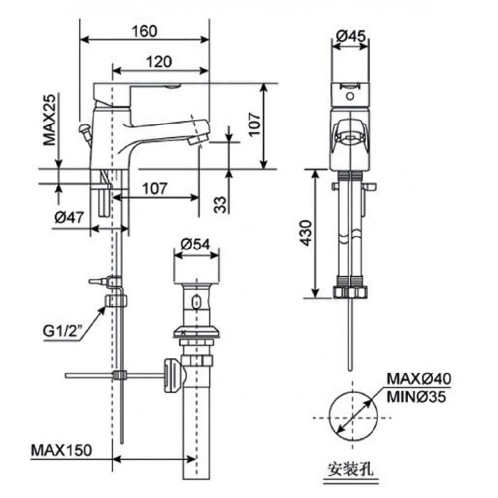 Hình ảnh: bản vẽ kỹ thuật Vòi rửa mặt nóng lạnh Seva American Standard WF-6501