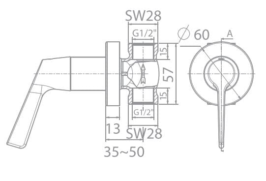 Hình ảnh: bản vẽ kỹ thuật Vòi Sen Lạnh Âm Tường American Standard WF-T605