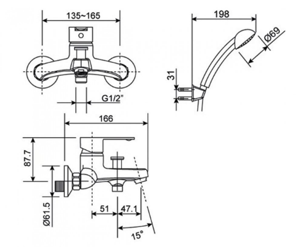 Bản vẽ kỹ thuật vòi tắm nóng lạnh American Standard WF-6511: